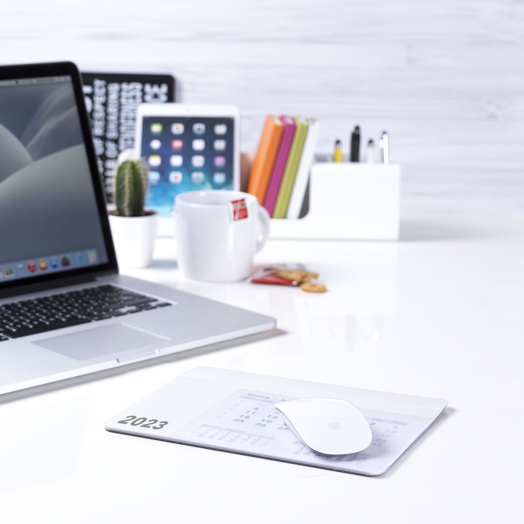 Info: Mousepad calendario con 12 fogli interni. Design del mese corrente/mese precedente/mese successivo, con area per le note. Copertura protettiva trasparente e base imbottita antiscivolo.