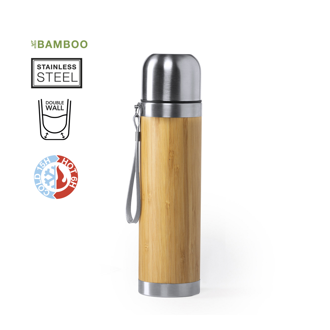 Bouteille isotherme en bambou et en acier inoxydable, sans BPA.
