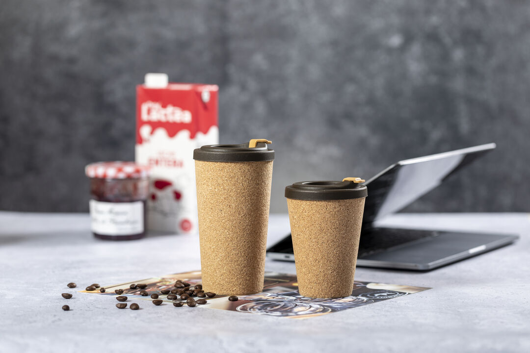Info: Bicchiere termico da tavolo in sughero naturale con capacità di 350 ml. Interno e coperchio in PP resistente. Coperchio con apertura facilitata ed etichetta Made In Europe.