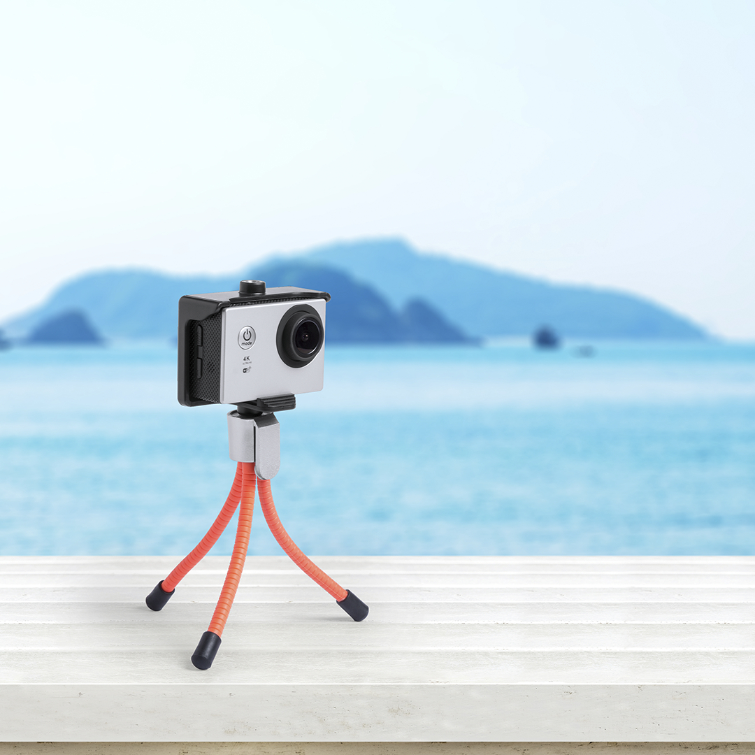 Info: Treppiede per fotocamere con regolazione universale a vite. Con gambe in gomma flessibili e antiscivolo per tutti i tipi di superfici.