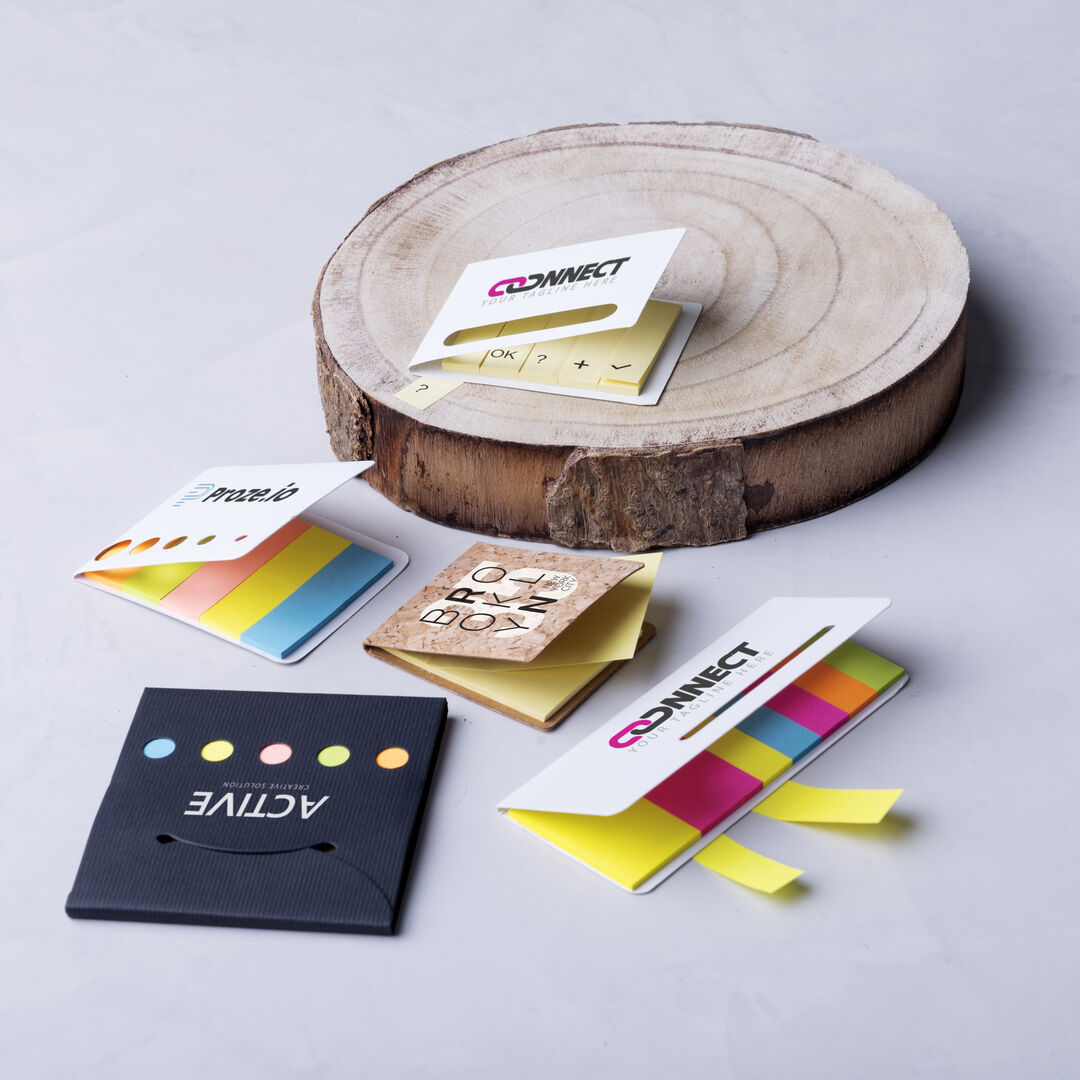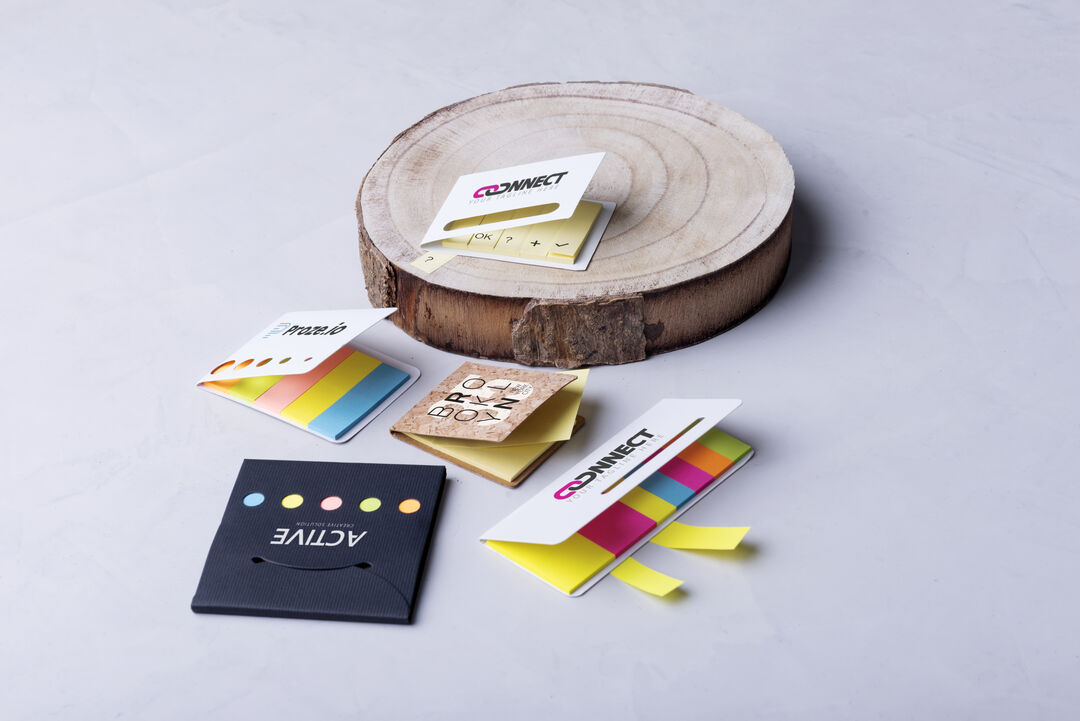 Info: Blocco di post it con copertina fustellata soft touch rifinita in elegante cartone bianco. Con 20 post it grandi e 100 post it mini.