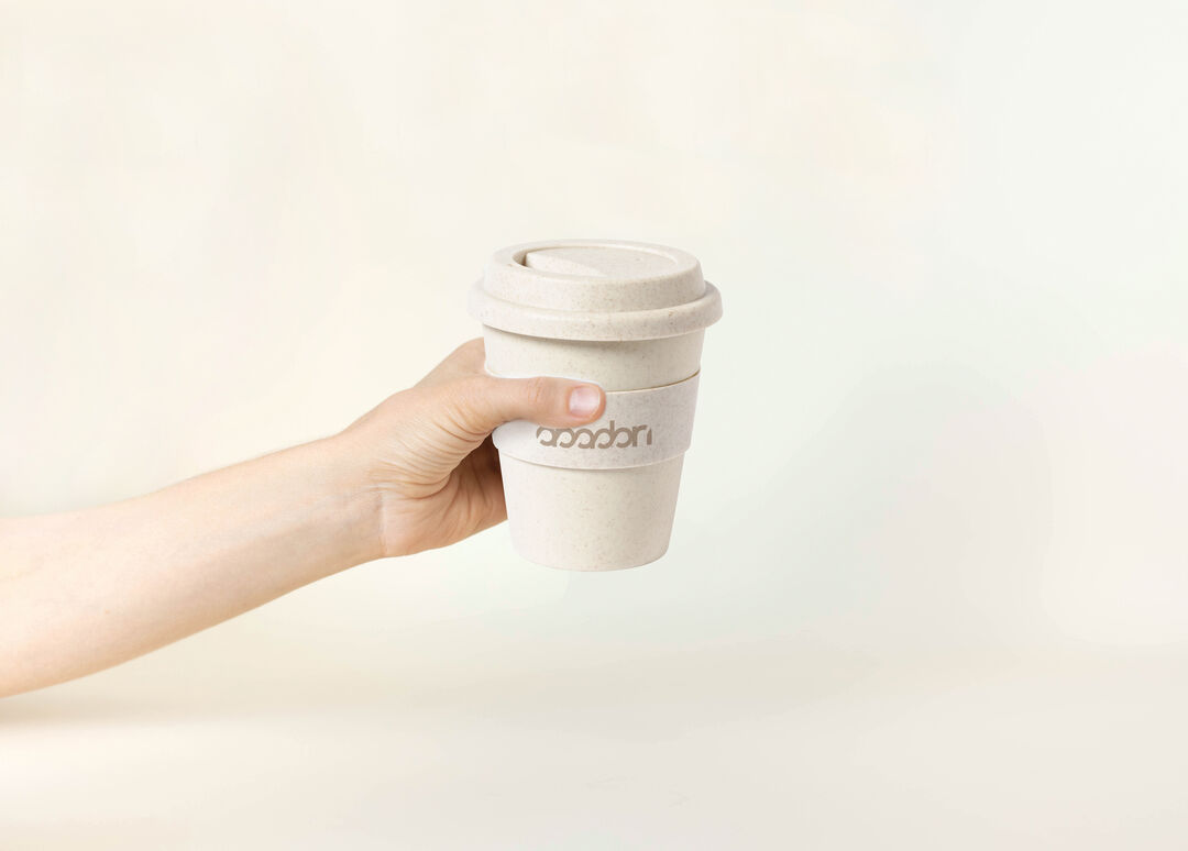 Tazza in PP marmorizzato con una capacità di 350ml.