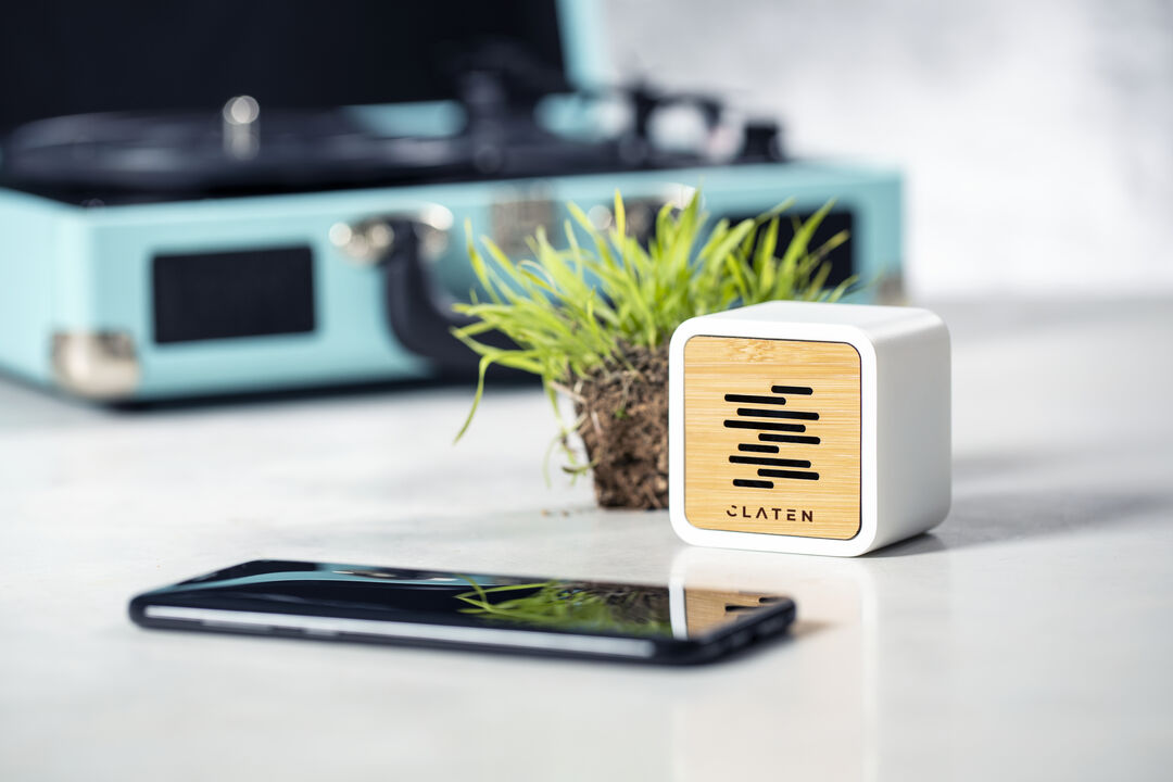 Realizzata con una combinazione di bambù e PLA -Poly Lactic Acid-, che è ottenuto da risorse naturali al 100% come l'amido di mais, manioca o canna da zucchero, e può diventare compostabile al 100% alla fine del suo ciclo di vita utile. 3W di potenza, con funzione vivavoce e ricaricabile tramite cavo USB -incluso-.