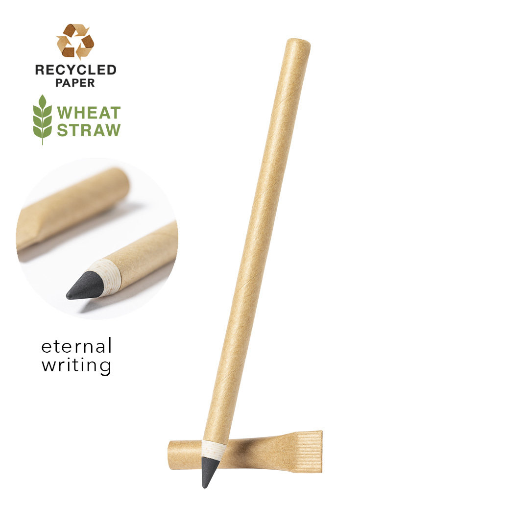Realizzata in carta riciclata e con punta in fibra di grano, per promuovere l'uso di materie prime naturali e ridurre le emissioni inquinanti.