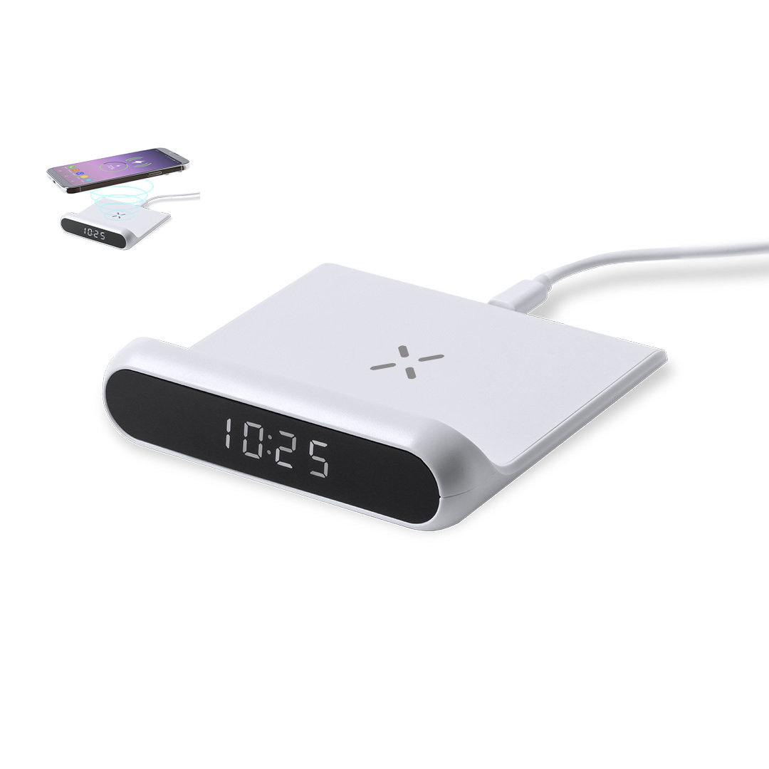 Orologio multifunzione con display retroilluminato e caricatore wireless integrato da 10W.