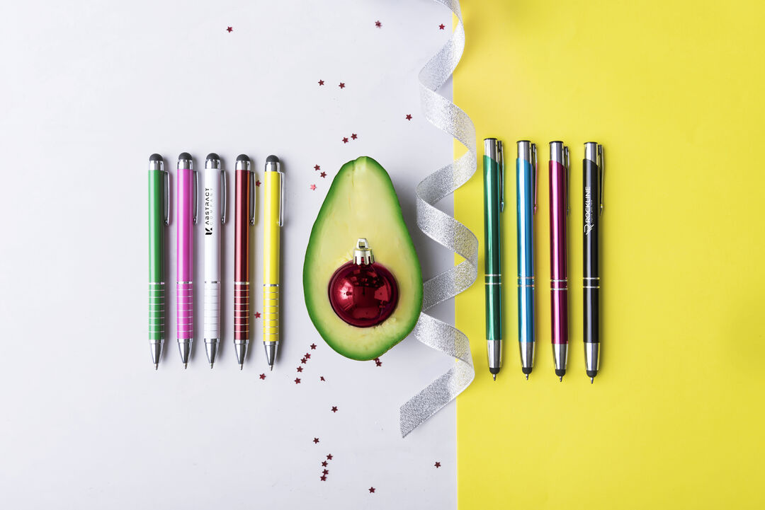 Penna puntatore con meccanismo Twist e fusto in alluminio liscio con finitura metallica in colori vivaci.