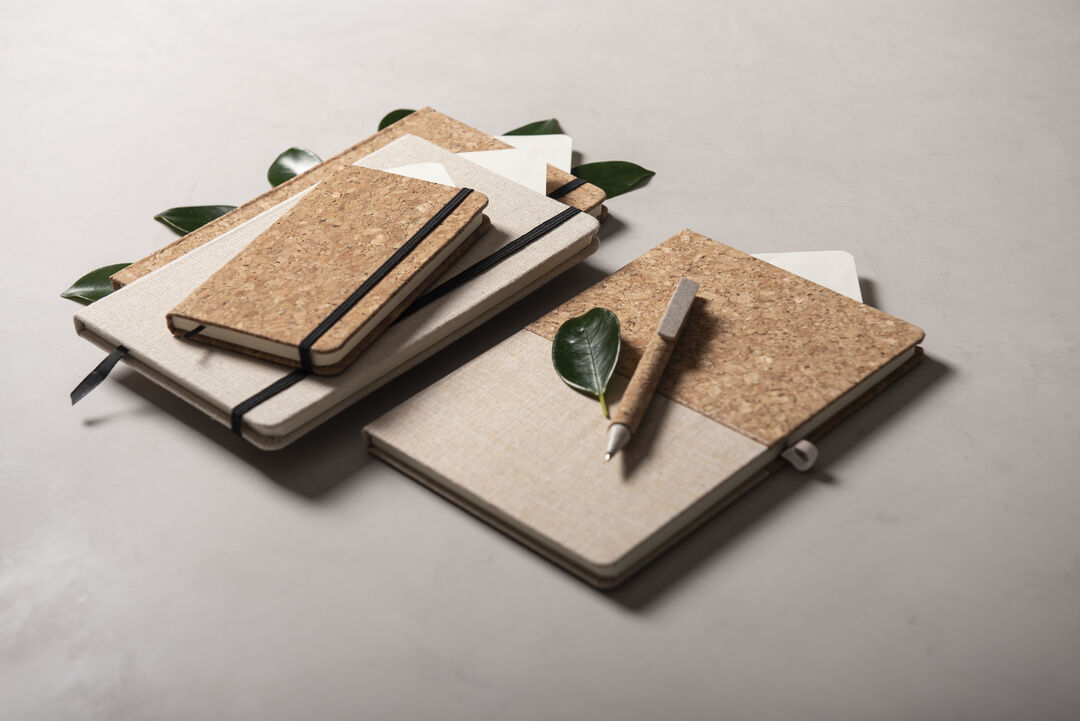 Block notes con copertina soft touch rifinita in sughero naturale.
