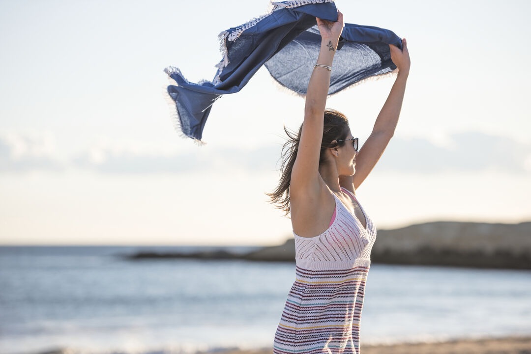 Stuoia in materiale 100% cotone da 125g/m2 con un originale design circolare dai colori vivaci e finitura a frange.