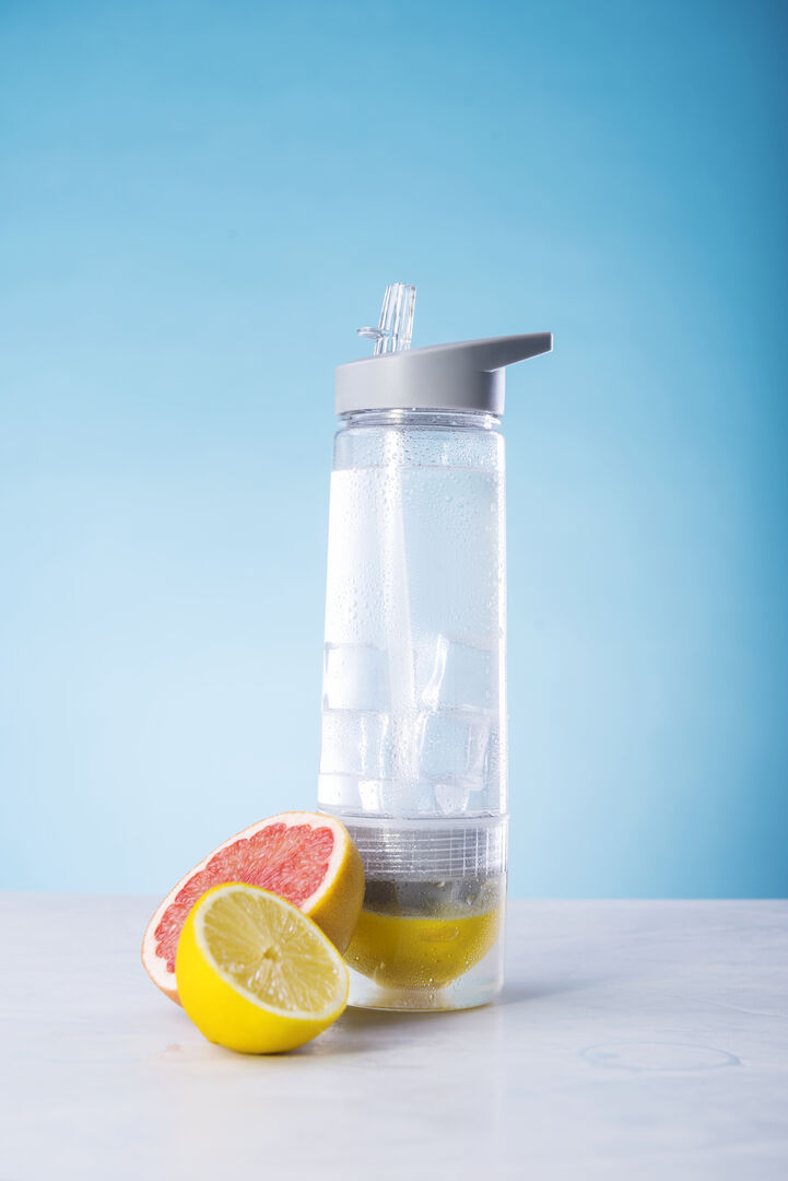 Scomparto alla base con spremiagrumi per aromatizzare l'acqua.