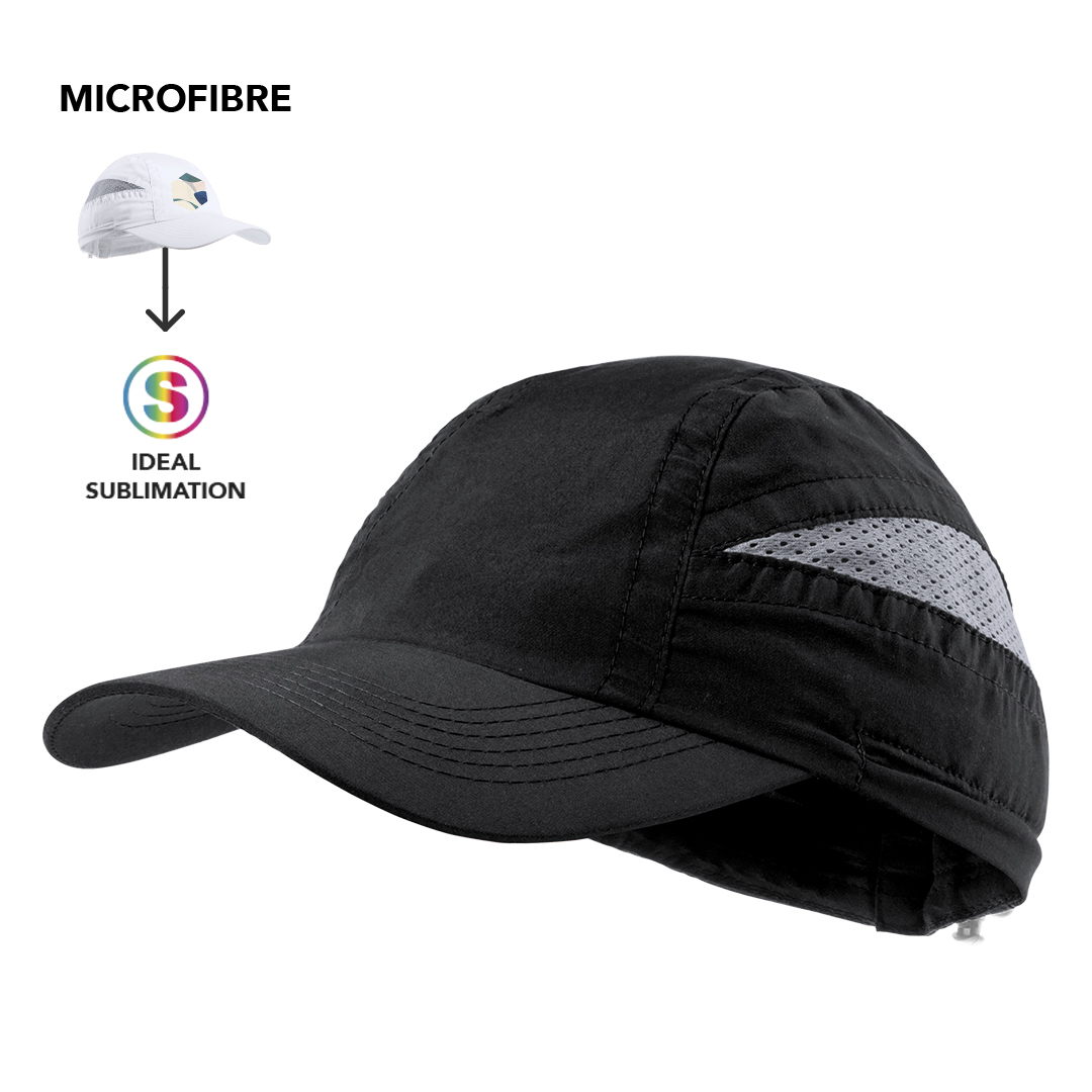 Info: Cappellino sportivo a 7 pannelli in morbida microfibra con design bicolore in colori vivaci. Chiusura elastica con accessorio di regolazione e pannelli in rete per il sudore.