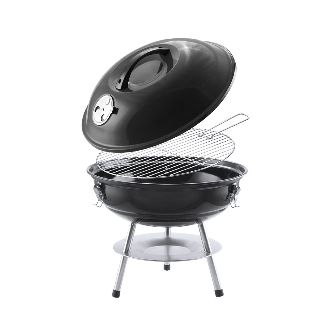 Info: Barbecue realizzato in robusto acciaio al carbonio con finitura nera. Coperchio con comoda maniglia e fori di ventilazione, con griglia in metallo, vassoio raccogli gocce e piedini antiscivolo. Confezionato in un'attraente scatola di design.