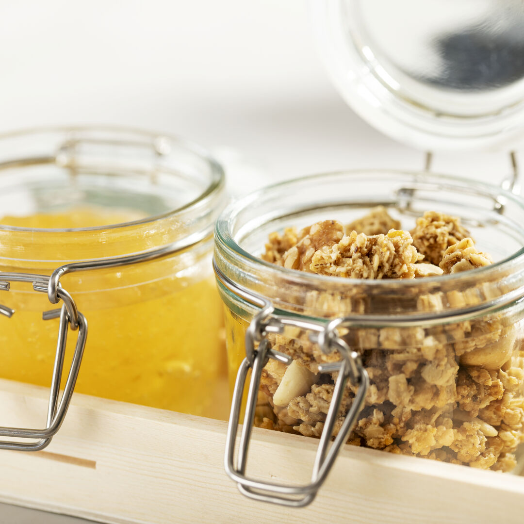 Info: Set di 3 barattoli in vetro con capacità di 230 ml. Complementi versatili per organizzare la casa, la cucina, la dispensa... secondo le vostre preferenze ed esigenze personali. Realizzati in vetro, con guarnizioni a pressione in acciaio inox, una combinazione di materiali che garantisce grande resistenza e durata. Presentati in un vassoio di legno e in una scatola individuale di eco-design.