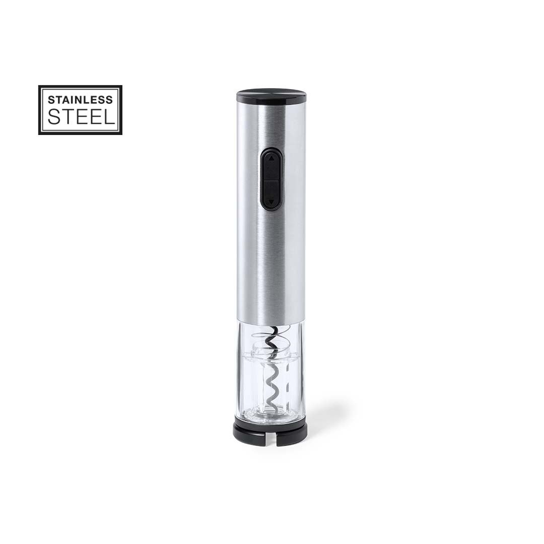 Info: Cavatappi elettrico in acciaio inossidabile e ABS resistente, con tagliacapsule incluso. Confezionato singolarmente in una scatola di design, con manuale di istruzioni in inglese e spagnolo. Alimentazione a batteria (4xAA non incluse).