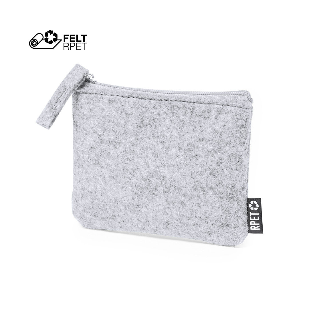 Info: Elegante portamonete in feltro RPET. Scomparto principale con chiusura a zip e tiretto in tinta. Con logo feltro RPET sull'etichetta esterna. Il feltro RPET è il risultato della combinazione del processo di riciclo delle materie plastiche con la tecnica millenaria di produzione del feltro, che dà vita a un materiale di eco-tendenza che, oltre a essere di origine riciclata, diventa anche riciclabile.