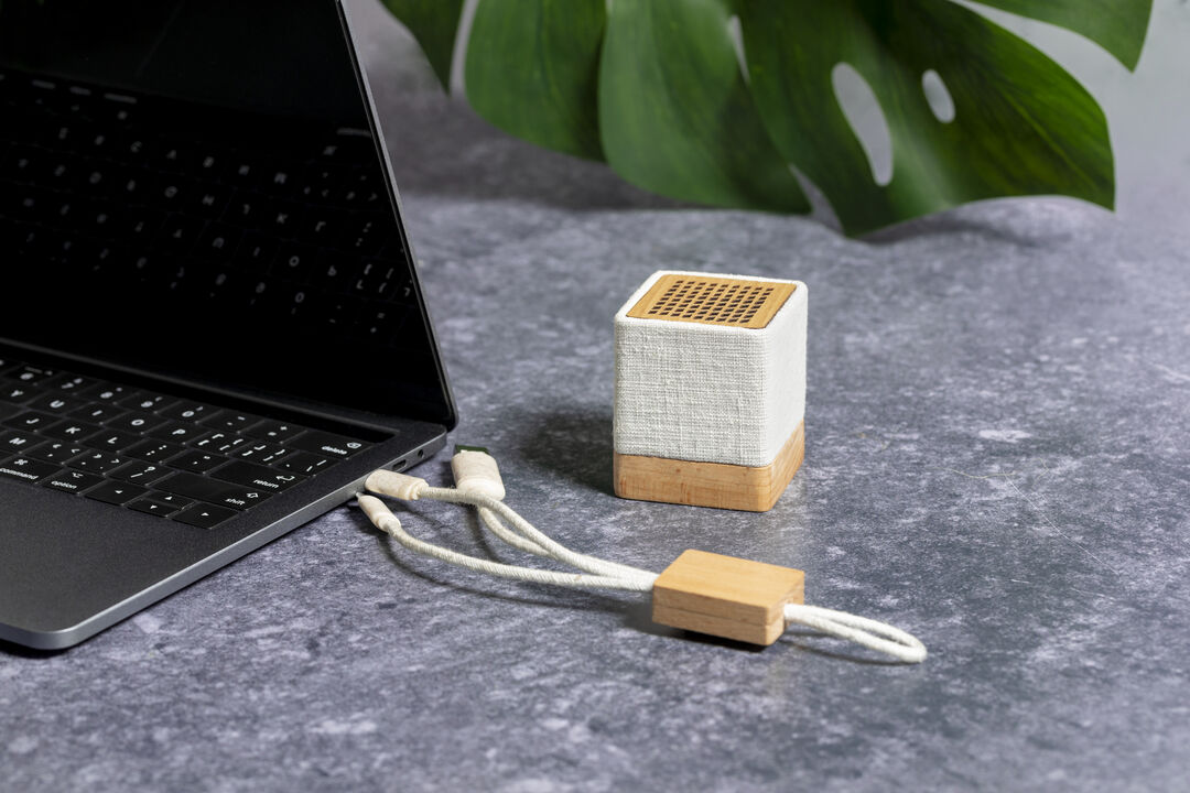 Info: Cavo di ricarica con cinghia di trasporto. Prodotto con materiali naturali ed ecologici: Pezzo centrale in legno naturale. Cavi rivestiti in canapa biologica, ottenuta dalla pianta di cannabis, i cui processi di coltivazione e produzione della fibra sono rispettosi dell'ambiente, dando vita a un materiale altamente resistente di origine naturale e sostenibile. Manicotti del connettore realizzati in fibra di grano, per promuovere l'uso di materie prime naturali e ridurre le emissioni inquinanti.Include connessioni di ingresso USB e di tipo C, uscite Lightning, Micro USB e Tipo C. 5V DC 2,4A. Presentato in un sacchetto kraft individuale.