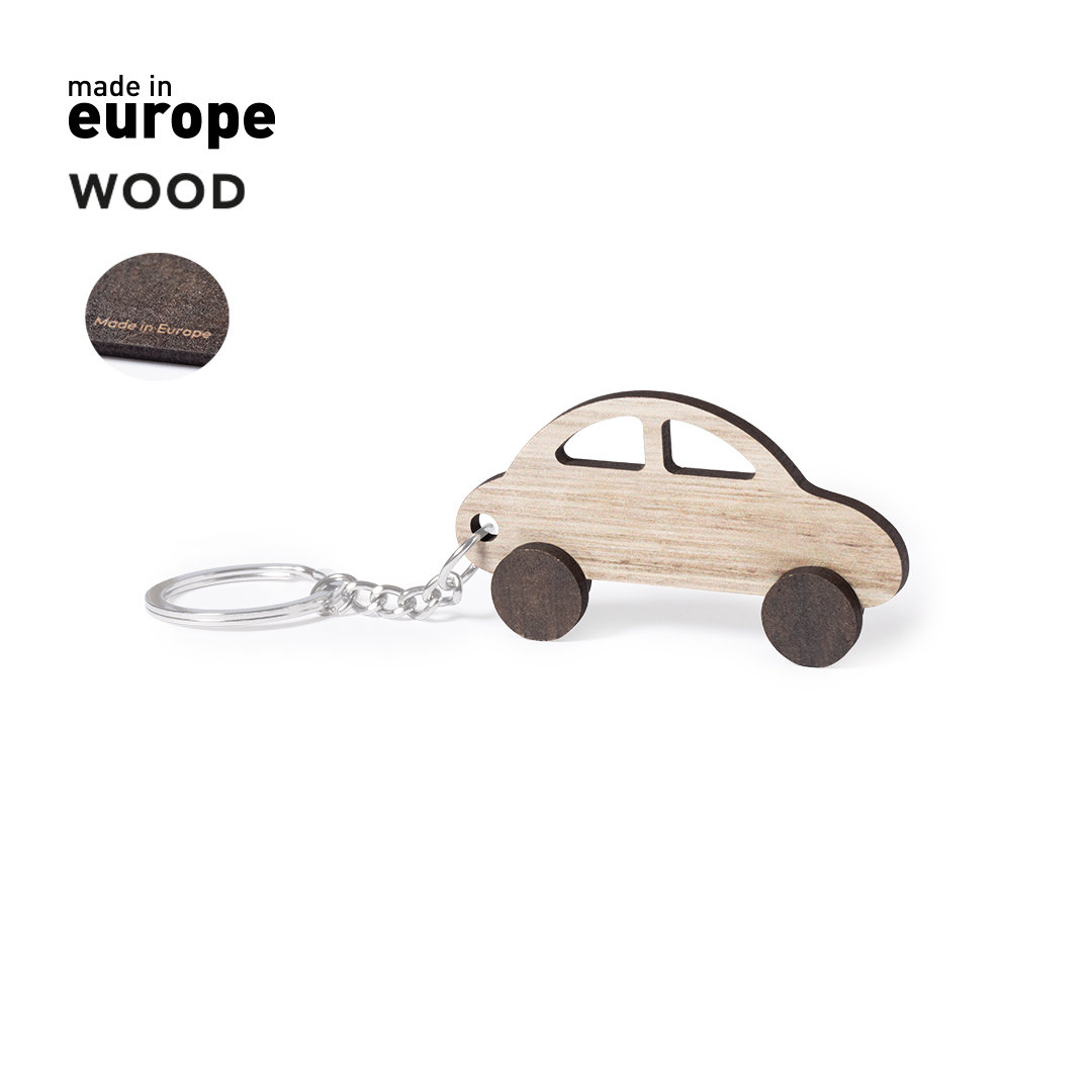 Info: Portachiavi dal design a forma di automobile, realizzato in legno naturale e con originale finitura bicolore. Ampia area di stampa, con anello e catena in metallo e logo Made In Europe.