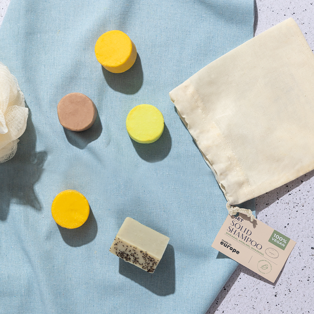 Info: Set di shampoo vegano. Contenuto:1 shampoo solido Shikakai da 30 g, realizzato con una selezione di principi attivi come l'oliva vergine, il burro di karité biologico, la carota e gli estratti botanici di shikakai. Ricco di vitamina E, dona ai capelli pulizia, setosità e vigore. Piacevolmente profumato apporta uno stato di piacere e benessere interiore. 1 shampoo solido Amalaki da 30g con estratti vegetali e spezie. Arricchito con curcuma, amalaki, avocado, oliva, jojoba, rosa damascena, pompelmo bianco e arancia per un'idratazione profonda e una brillantezza impressionante.1 shampoo solido al Ghassoul da 30 g. Con ghassoul del Marocco, che dona elasticità, volume e lucentezza, senza alterare la cheratina naturale. Ricco di burro di karité, fornisce idratazione e morbidezza. Il mandarino aggiunge lucentezza e gli oli essenziali di incenso, geranio, lavanda e rosa conferiscono un aroma accattivante che vi porterà in uno stato di equilibrio e pace.Presentato in un sacchetto di cotone individuale, con chiusura a coulisse ed etichetta distintiva. Dermatologicamente testato e prodotto in Europa.Prodotto sostenibile e 100% vegano, senza ingredienti di origine animale. Inoltre, questi prodotti non sono stati testati su animali, promuovendo la cura e il rispetto di tutti gli animali.