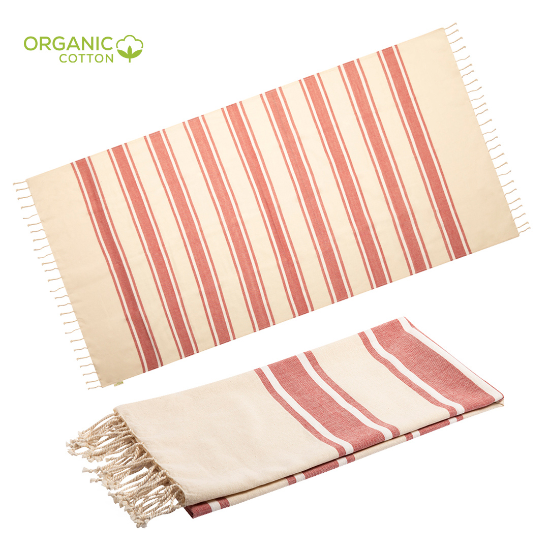 Info: Asciugamano Pareo 2 in 1 in cotone organico da 110 g / m2. Dimensioni 180 x 90 cm e disponibile in una vasta gamma di colori combinati. Distintivo di etichetta biologica.