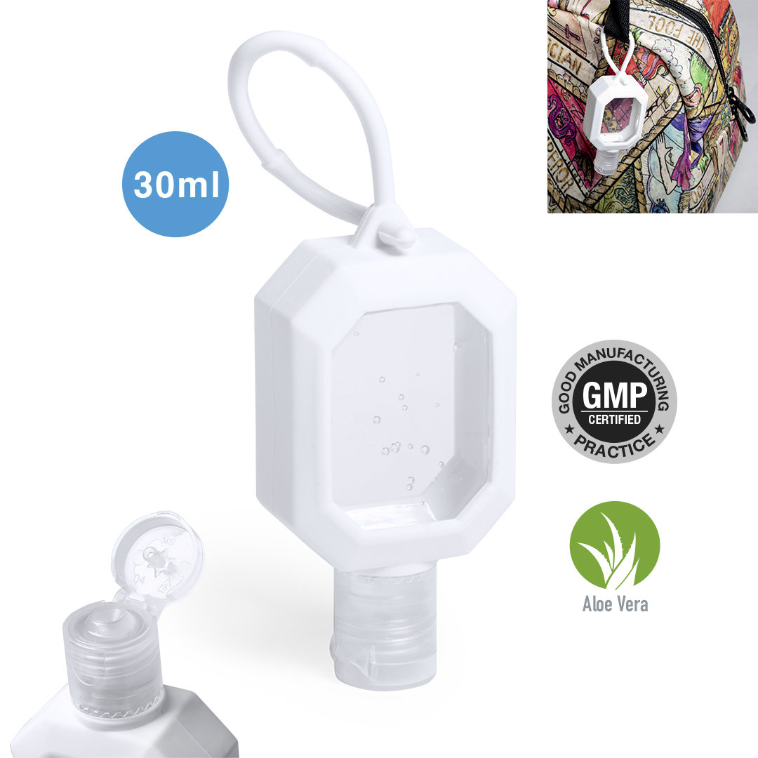 Info: Gel idroalcolico per l'igiene e la pulizia della pelle in flacone ricaricabile da 30 ml, con estratto balsamico di Aloe Vera. Flacone in morbido silicone bianco, con dispenser, tappo di sicurezza e cordone in silicone per il trasporto / fissaggio. Soluzione al 65% di contenuto alcolico.Disponibile certificazione 94/62/CE.Articolo con certificazione GMP (Good Manufaturing Practices) che garantisce l'adempimento di rigorose misure di controllo per ottenere un prodotto sicuro e di qualità .