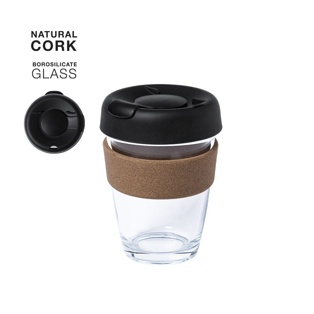 Info: Bicchiere della Linea Natura, capacità di 350 ml, con una banda esterna in sughero Naturale e senza BPA. Realizzato in vetro borosilicato, che offre una resistenza e una durata eccezionali, estendendo la sua vita utile e può essere riutilizzato innumerevoli volte. Coperchio di sicurezza con dispenser e apertura facilitata. Confezionato singolarmente in scatola di eco-design.