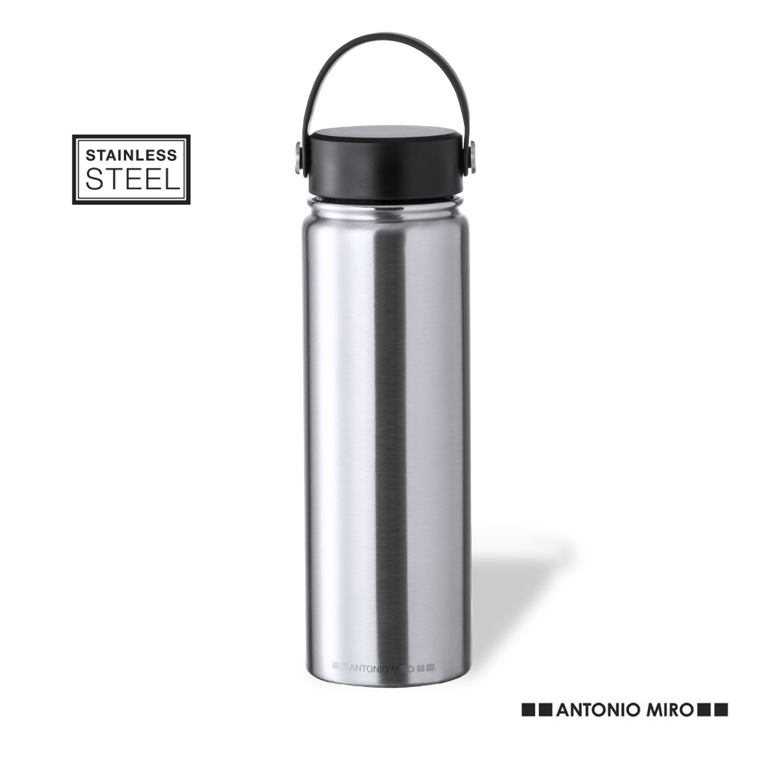 Info: Borraccia termica by Antonio Miró con capacità di 650 ml. Realizzata in acciaio inox a doppia parete con finitura satinata. Con tappo a vite nero e tracolla in silicone abbinata. Con logo Antonio Miró sul corpo e presentata in una scatola nera individuale con logo del marchio.Manuale di istruzioni disponibile in spagnolo e inglese.