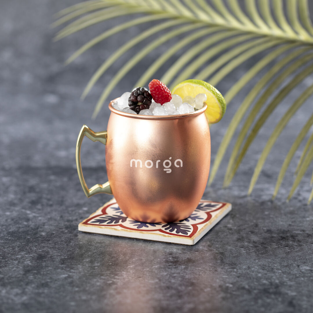 Info: Tazza da 500 ml in acciaio inossidabile con rivestimento esterno in rame galvanizzato. Manico dal design innovativo e presentato in una scatola individuale.