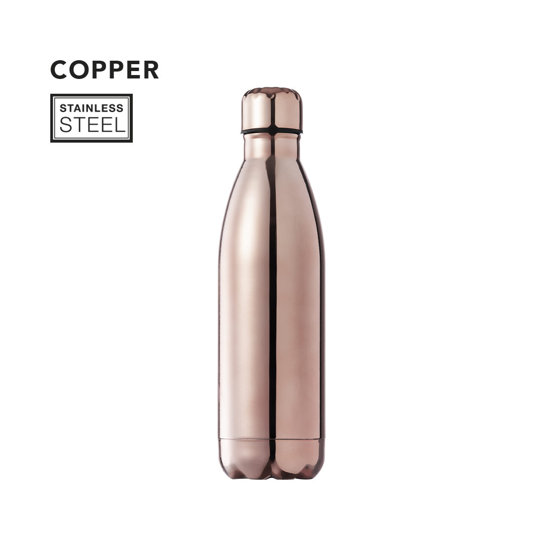 Info: Borraccia da 790 ml, in acciaio inox con rivestimento esterno in rame galvanizzato. Tappo a vite, senza BPA. Presentata in una scatola nera individuale dal design elegante.