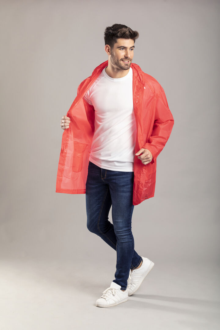 Info: Resistente impermeabile in EVA con finitura termosaldata in diversi colori. Cappuccio con cinghie di regolazione, chiusura principale con gancio e passante e tasche laterali con patta. Taglia unica per adulti.