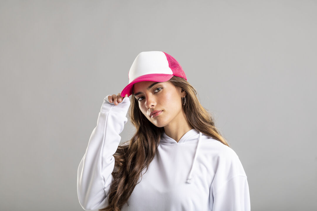 Info: Cappello modello trucker a 5 pannelli in materiale 100% poliestere con finitura liscia. In una ampia gamma di colori vivaci, con pannello frontale bianco e chiusura regolabile in plastica.