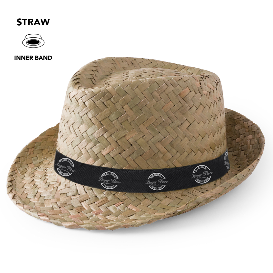 Info: Sombrero in paglia. Realizzato in paglia intrecciata di colore bianco o verde naturale, la sua lavorazione lo rende traspirante. È dotato di una fascia interna per renderlo più confortevole.