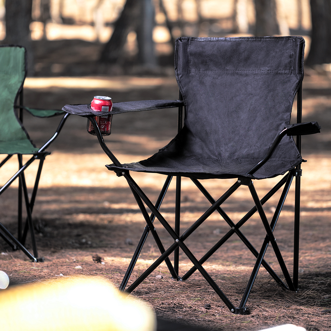 Info: Sedia pieghevole con robusta struttura in tubolare metallico. In resistente poliestere 600D in una gamma di colori vivaci. Con cuciture rinforzate, braccioli e tasca in rete integrata per le bevande. Con rinforzi in gomma antiscivolo sulle gambe e presentata in una borsa individuale con coulisse di chiusura, regolazione e tracolla.