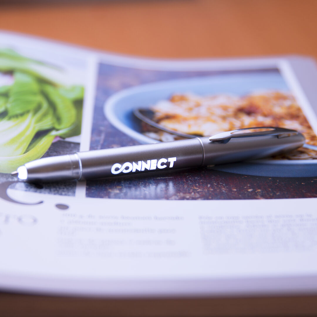 Info: Penna touch con cappuccio, luce LED all'interno e fusto appositamente progettato per la stampa laser, in modo da illuminare il logo. Con fusto a tinta unita in una gamma di colori metallizzati e inchiostro blu. Batterie a bottone incluse.