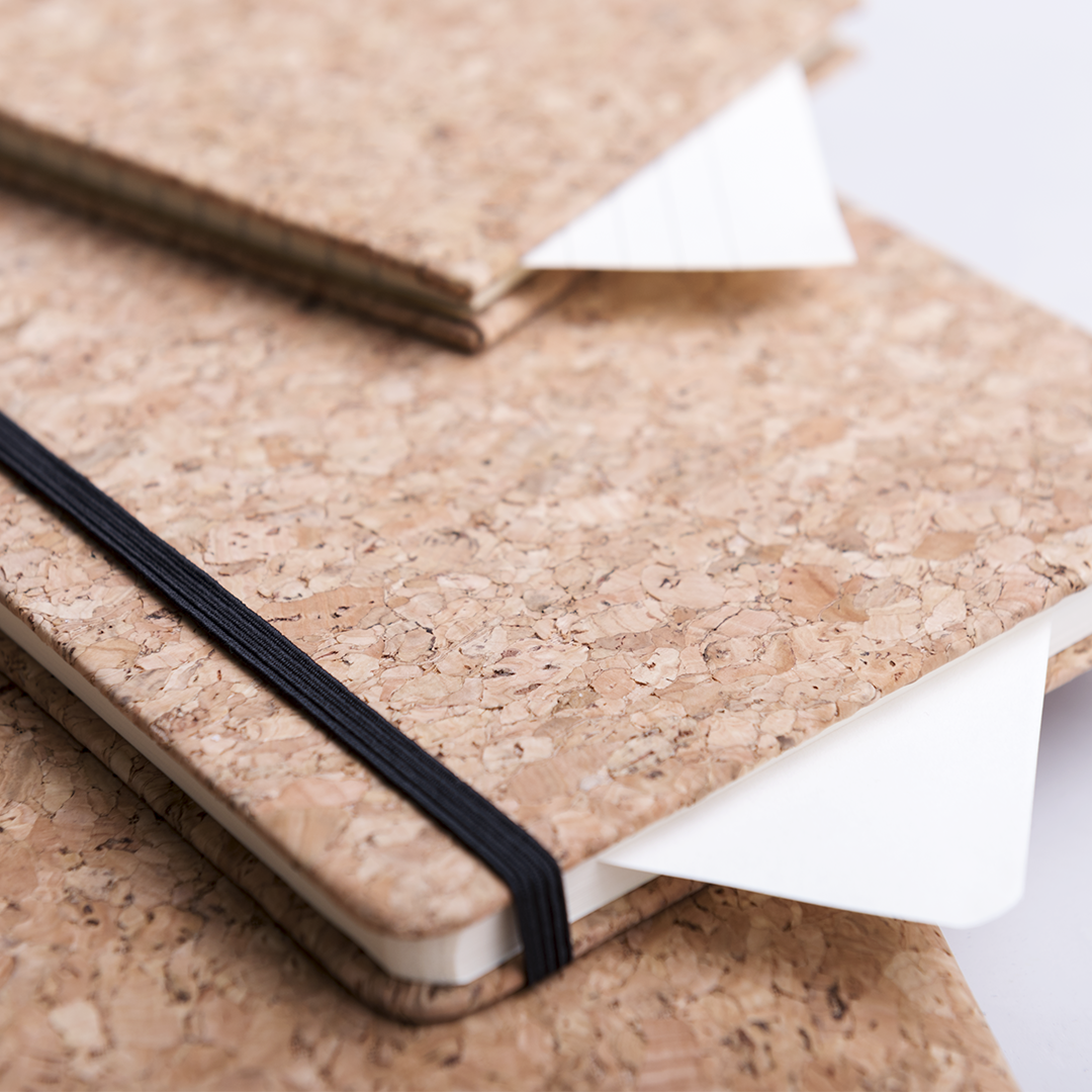 Info: Block notes ecologico in sughero naturale con copertina rigida. Con 80 fogli lisci con finitura naturale, chiusura elastica e segnalibro in tessuto in sobrio nero.