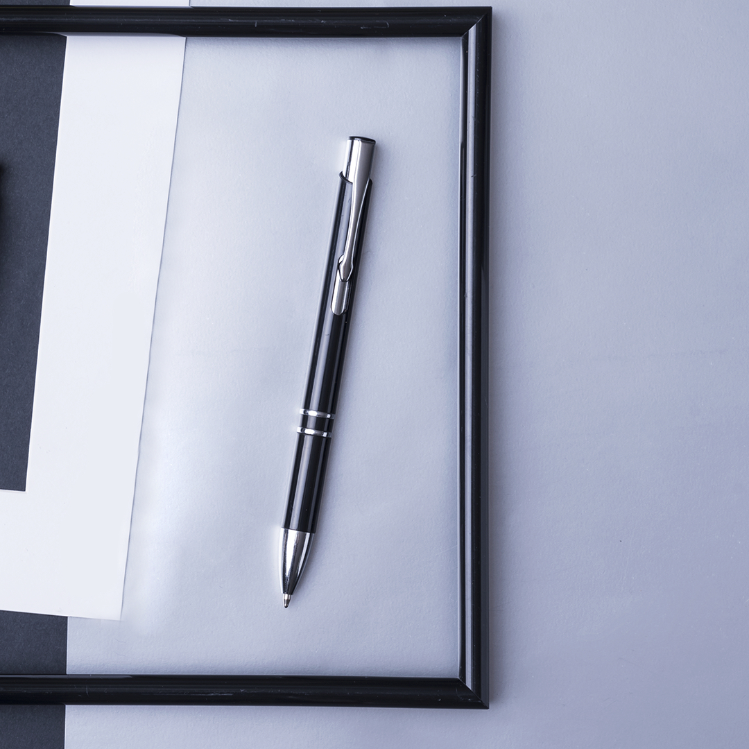 Info: Penna a sfera con fusto dai colori vivaci. Dettagli cromati e intaccatura originale sul fusto. Meccanismo a pulsante, con cartuccia jumbo e inchiostro blu.