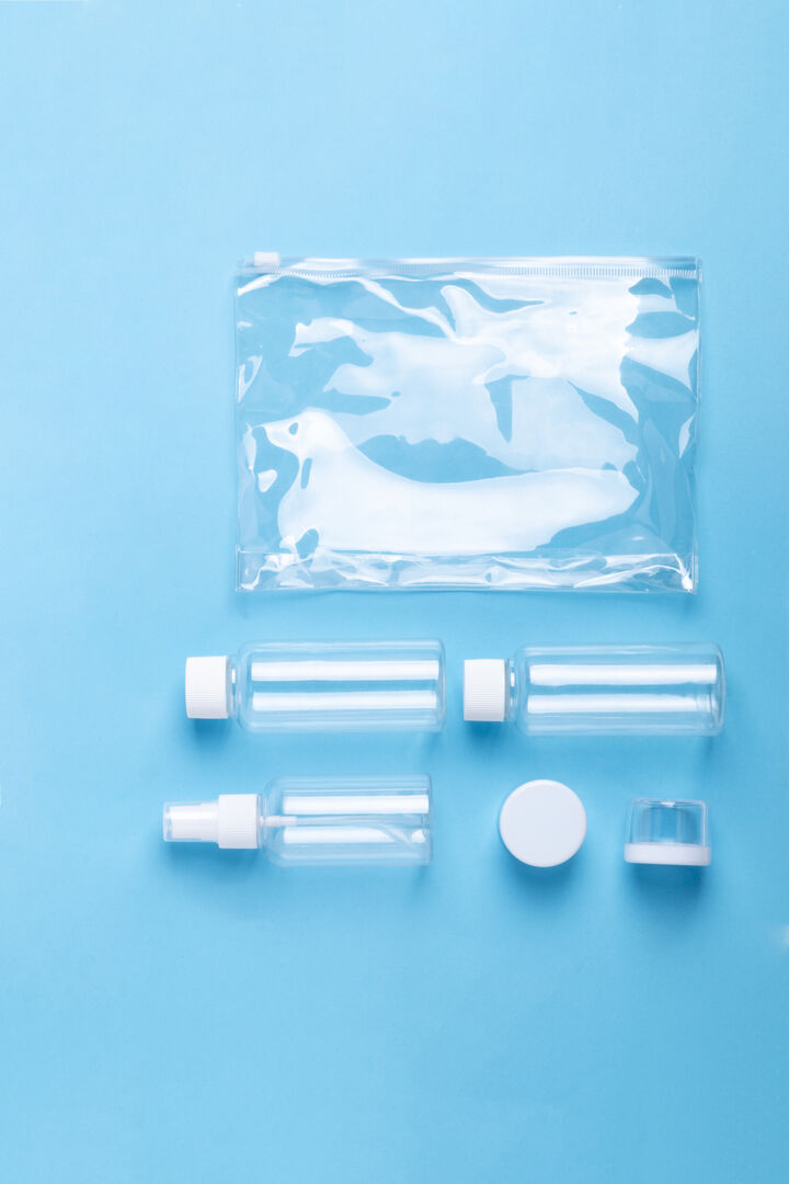 Info: Set di borse da toilette da viaggio con 5 accessori dal design trasparente. Include due flaconi per gel e shampoo con tappo a vite, flacone di profumo e due vasetti di crema. Presentato in una custodia in PVC abbinata con chiusura ermetica.