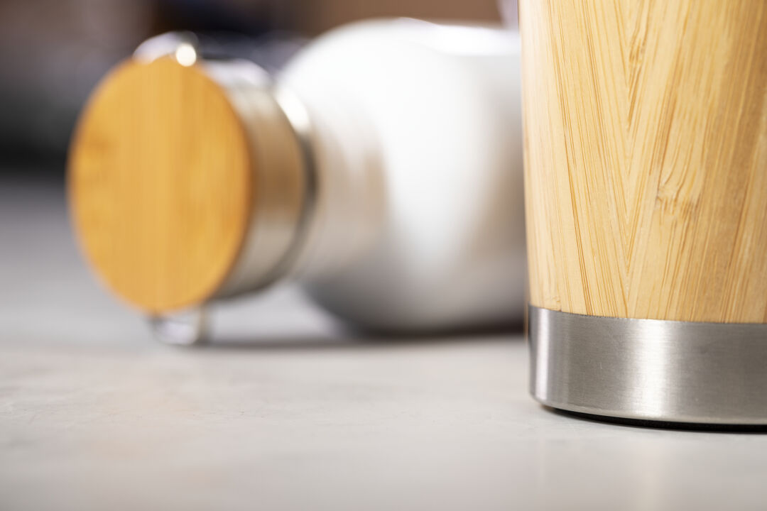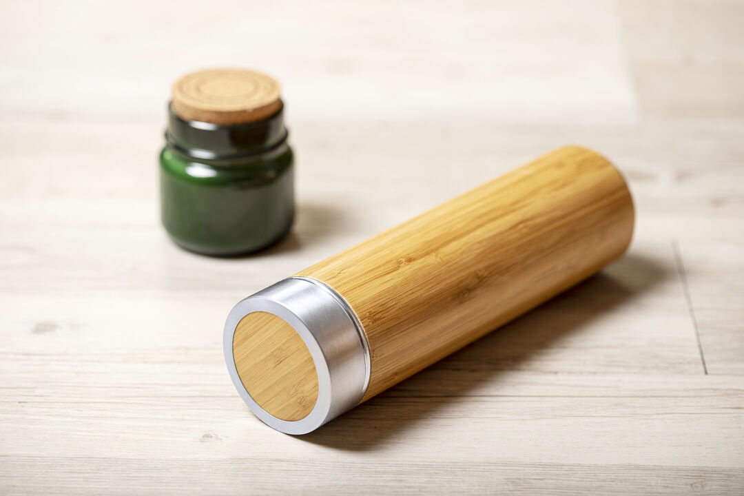 Info: Thermos di alta qualità da 500 ml con corpo in bambù e interno in acciaio inox. Tappo di sicurezza a vite in acciaio inox e bambù. Presentato in una scatola dal design accattivante.