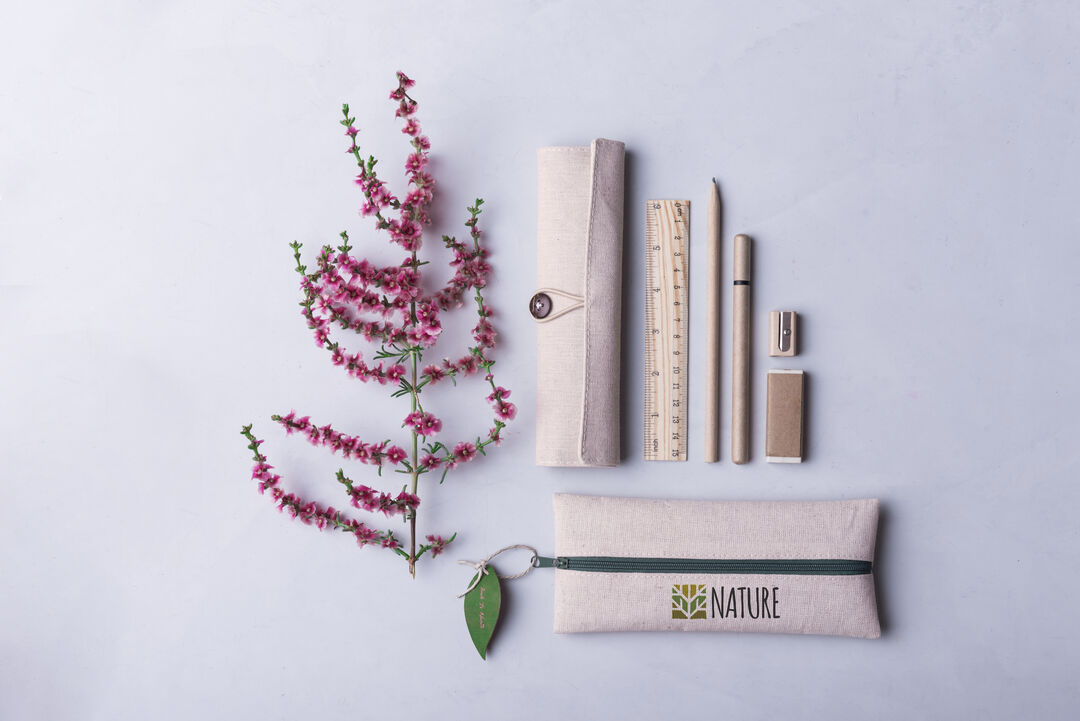 Info: Pratico astuccio della linea natura. Dimensioni compatte in una combinazione di materiali di juta e cotone. Con chiusura a zip e foglia per la pubblicitĂ sull'impugnatura.
