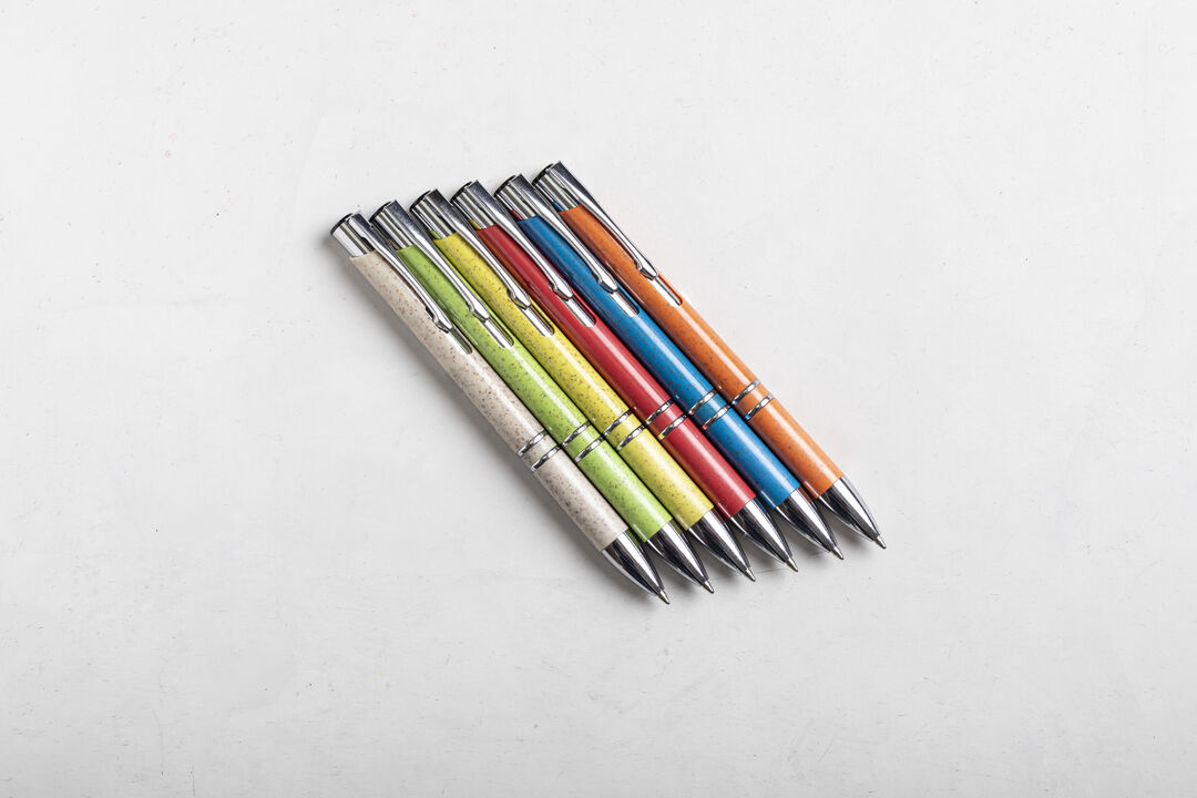 Info: Penna della linea natura con fusto in fibra di grano per promuovere l'uso di materie prime naturali e ridurre le emissioni inquinanti. Clip in metallo e accessori cromati. Meccanismo a pulsante, cartuccia jumbo e inchiostro blu. Disponibile in un'ampia gamma di colori naturali.