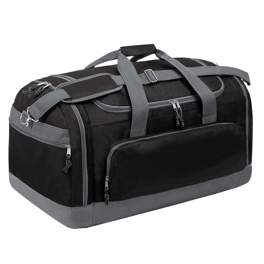 Info: Borsa multiuso di grande capacità, in resistente poliestere 600D. Design bicolore, con base e dettagli in grigio. Scomparto principale e tasche laterali con chiusura a cerniera. Maniglie di trasporto in nylon resistente, con chiusura in velcro abbinata. Include tracolla regolabile con chiusura a moschettone e spallina di protezione abbinata. Base rinforzata.