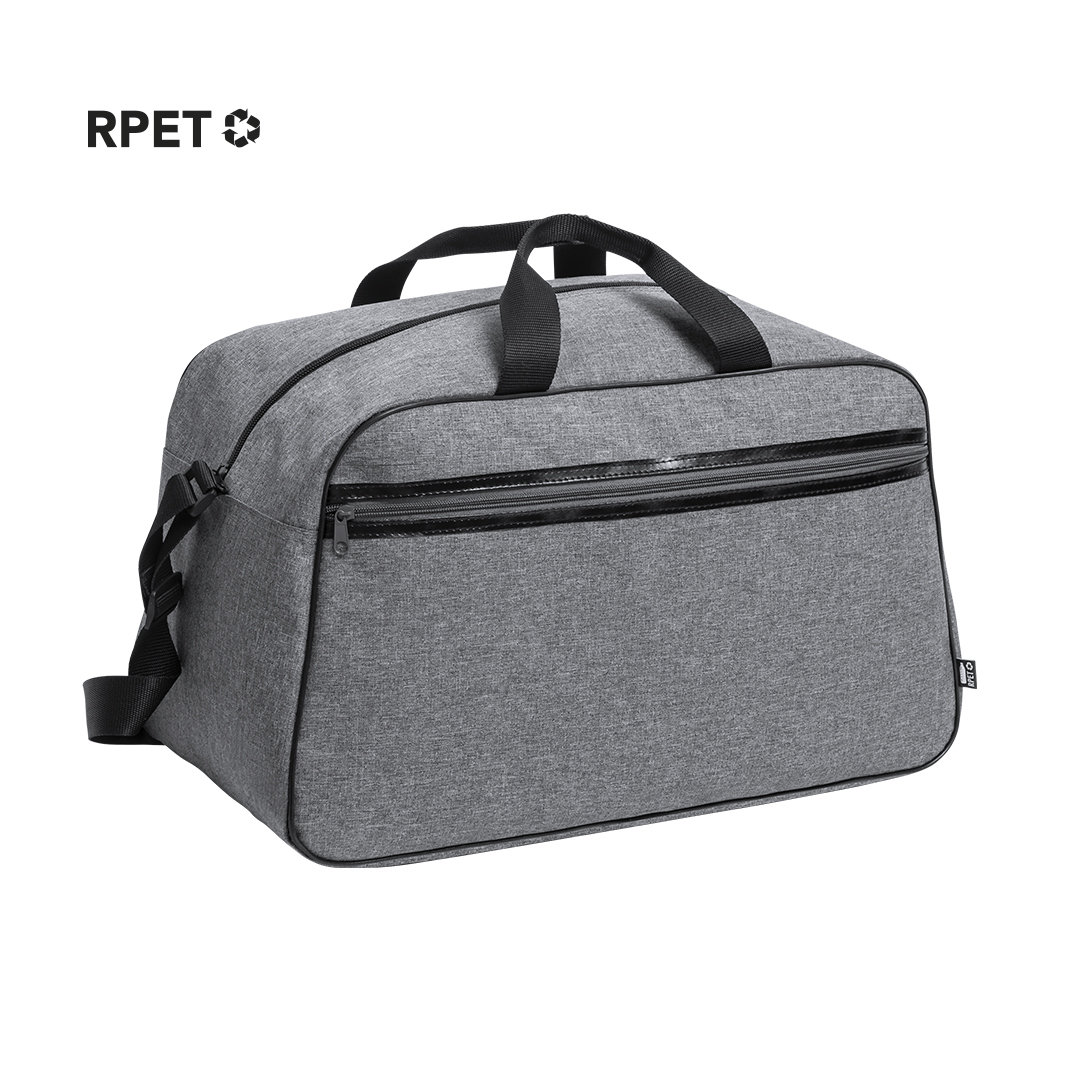 Info: Borsa multiuso della linea natura in resistente 600D RPET effetto melange. Realizzato in plastica riciclata per favorire il riutilizzo dei rifiuti plastici e contribuire alla sostenibilità del pianeta. Design urbano con dettagli in nero, comprende 2 tasche con cerniera e tiretti in metallo e interni foderati, rinforzati con PVC. Maniglie di trasporto rinforzate e tracolla regolabile, con etichetta distintiva del materiale RPET
