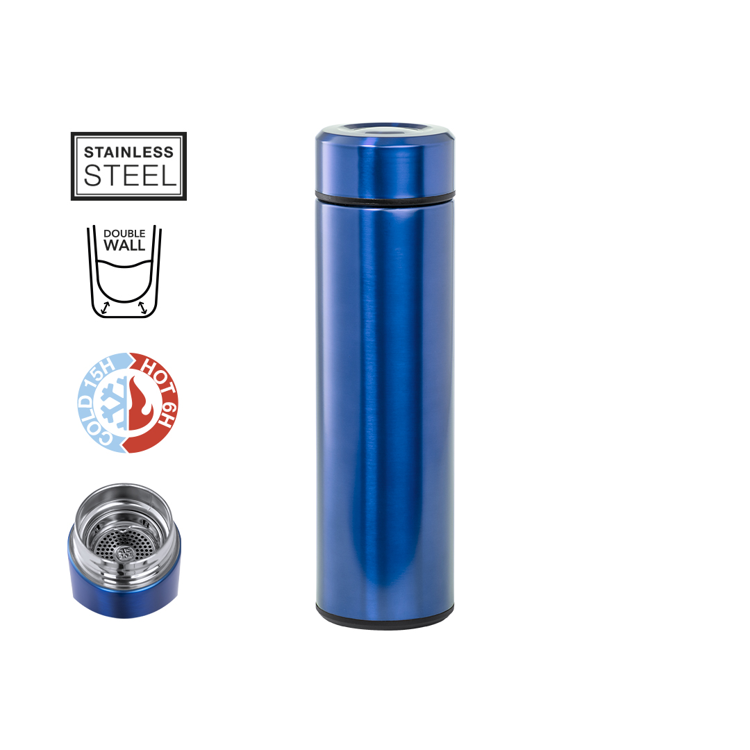 Info: Thermos in acciaio inossidabile della capacità di 500 ml. Con doppia parete per una migliore e più duratura conservazione della temperatura. Incluso di infusore e sistema di facile apertura a vite. Disponibile in un'ampia gamma di colori e confezionato in un'attraente scatola di design.