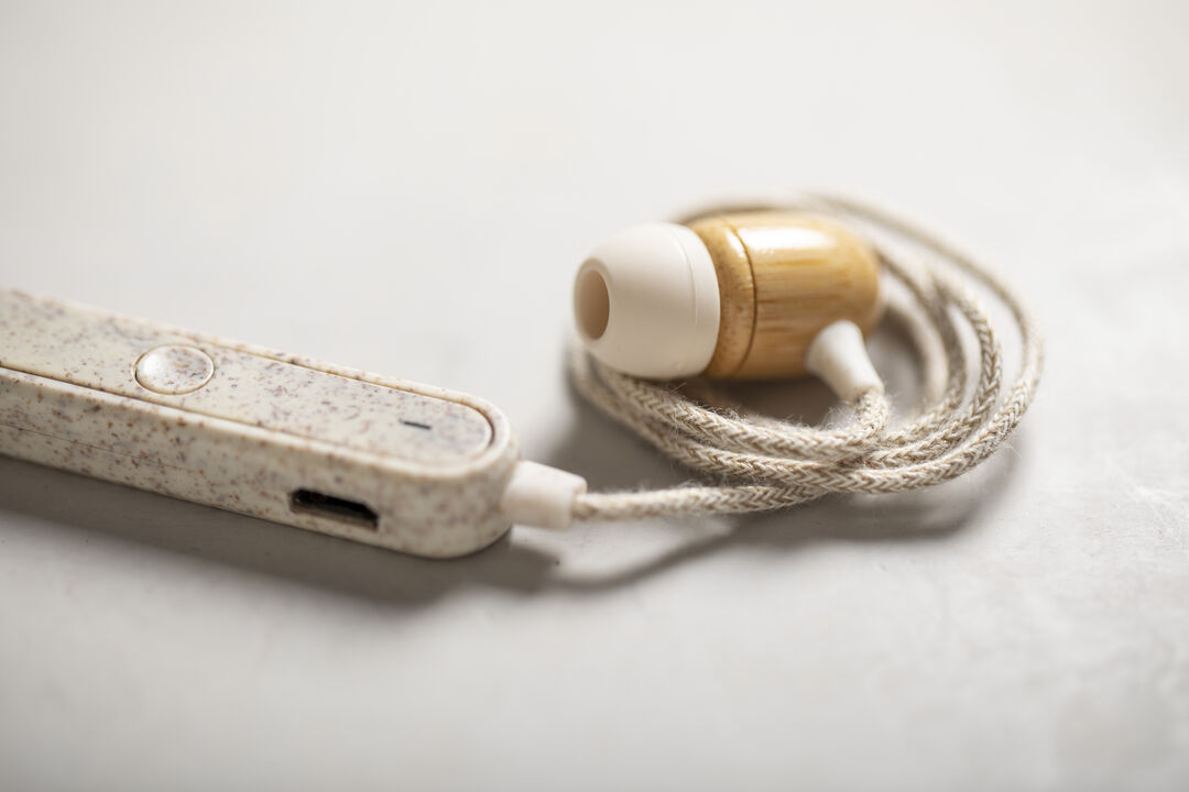 Info: Cuffie in-ear della Linea Natura con connessione Bluetooth® 5.0. Realizzate con una combinazione di materiali ecologici: auricolari in bambù con custodia in fibra di grano e cavi ricoperti di canapa per promuovere l'utilizzo di materie prime Naturali e ridurre le emissioni inquinanti. Con funzione vivavoce, pannello di controllo completo e ricaricabile tramite cavo micro USB -incluso-. Confezionate singolarmente in un'attraente borsa di eco-design, con manuale di istruzioni in inglese e spagnolo.