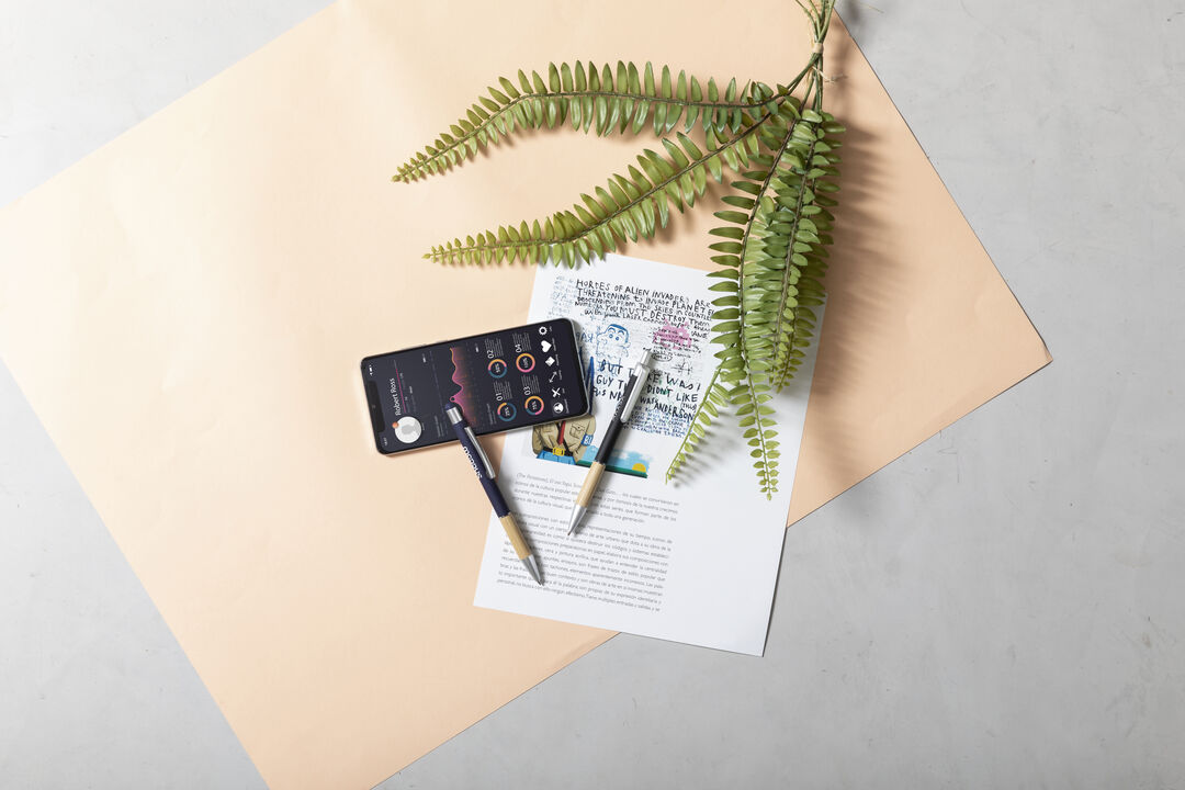 Info: Penna della Linea Natura con meccanismo a pulsante. Design elegante con fusto in alluminio opaco e impugNatura in bambù, con dettagli opachi. Clip di metallo e anello trasparente, inchiostro blu. Disponibile in una vasta gamma di colori.