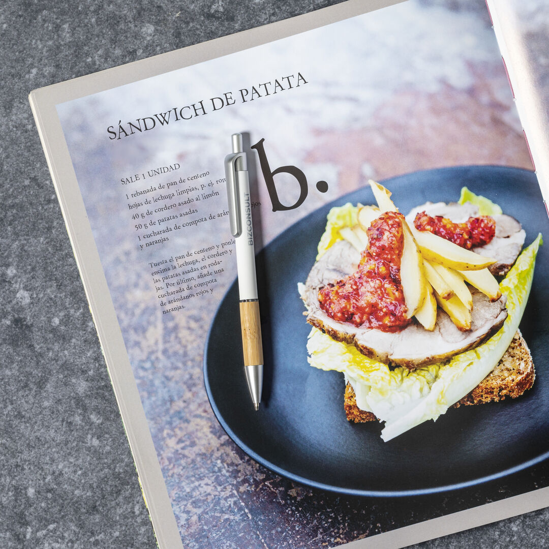 Info: Penna della Linea Natura con meccanismo a pulsante. Design elegante con fusto in alluminio opaco e impugNatura in bambù, con dettagli opachi. Clip con finitura metallica e anello trasparente, inchiostro blu. Disponibile in una vasta gamma di colori.