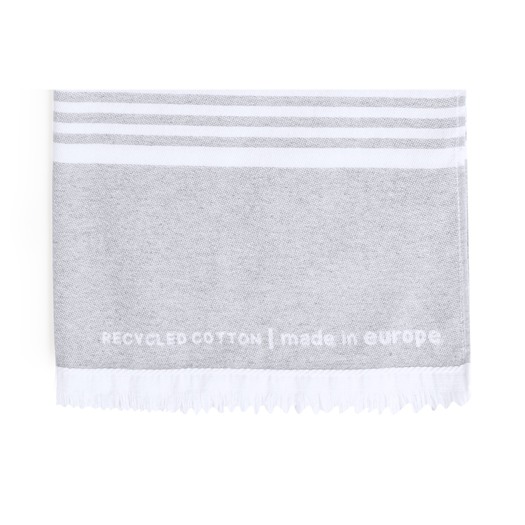 Info: Pareo 2 in 1 della linea natura con finitura color terra. Prodotto in Europa e in una combinazione di cotone riciclato e poliestere di 250g/m2. Con certificazione GRS (Global Recycled Standard) che certifica l'origine riciclata del materiale utilizzato nella fabbricazione del prodotto. Dimensioni 150 x 80 cm.