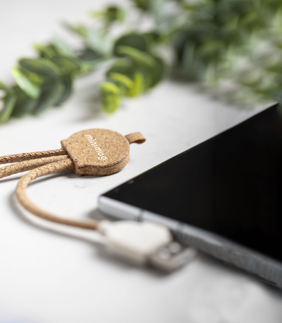 Info: Cavo di ricarica USB della Linea Natura, realizzato in sughero Naturale e con accessori in fibra di grano, per promuovere l'utilizzo di materie prime Naturali e ridurre le emissioni inquinanti. Con connessioni USB, tipo C (ingresso e uscita) e doppia micro USB-Lightning. Con accessorio per appendere e area liscia per la stampa. Confezionato singolarmente in un sacchetto individuale autosigillante dal design ecologico.