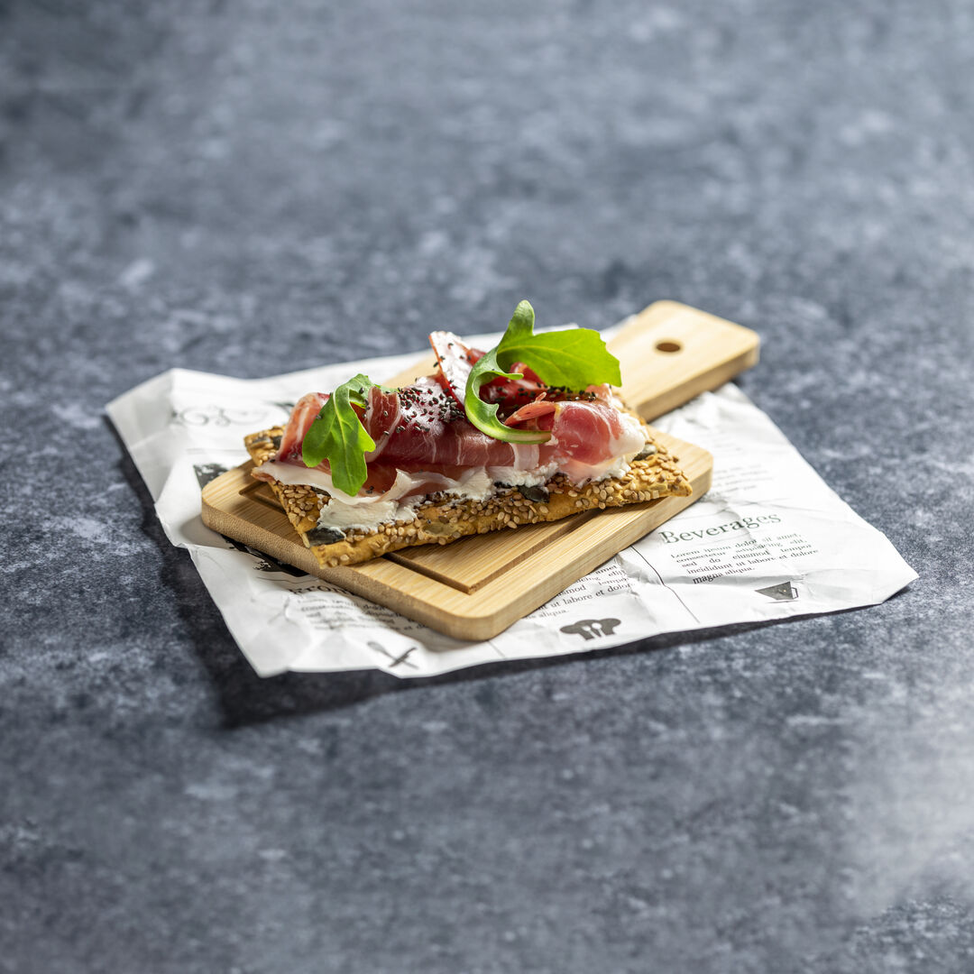 Tagliere della linea natura in bambù, ideale per la presentazione.
