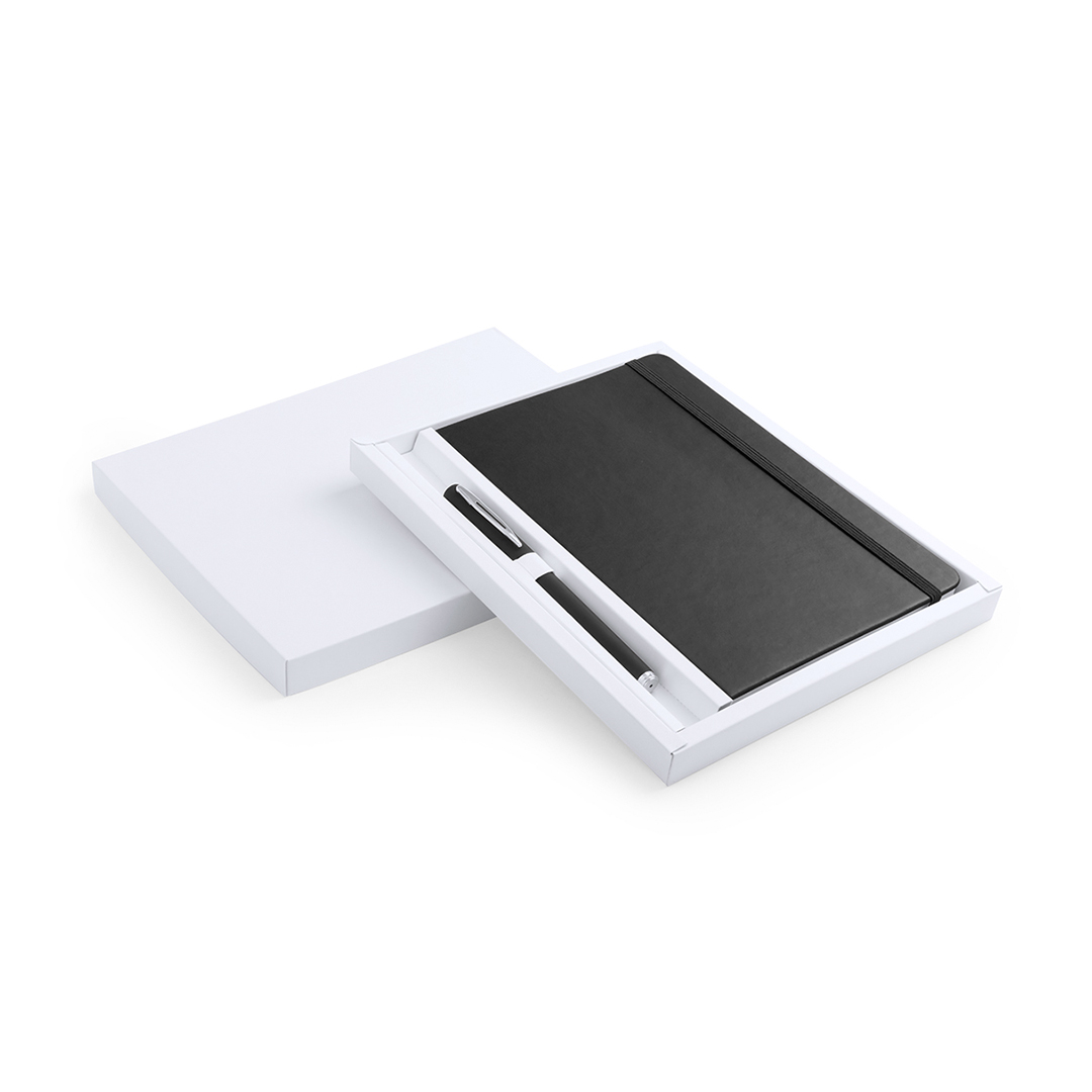 Set composto da taccuino con copertina in similpelle soft touch e biro abbinata con corpo coordinato.