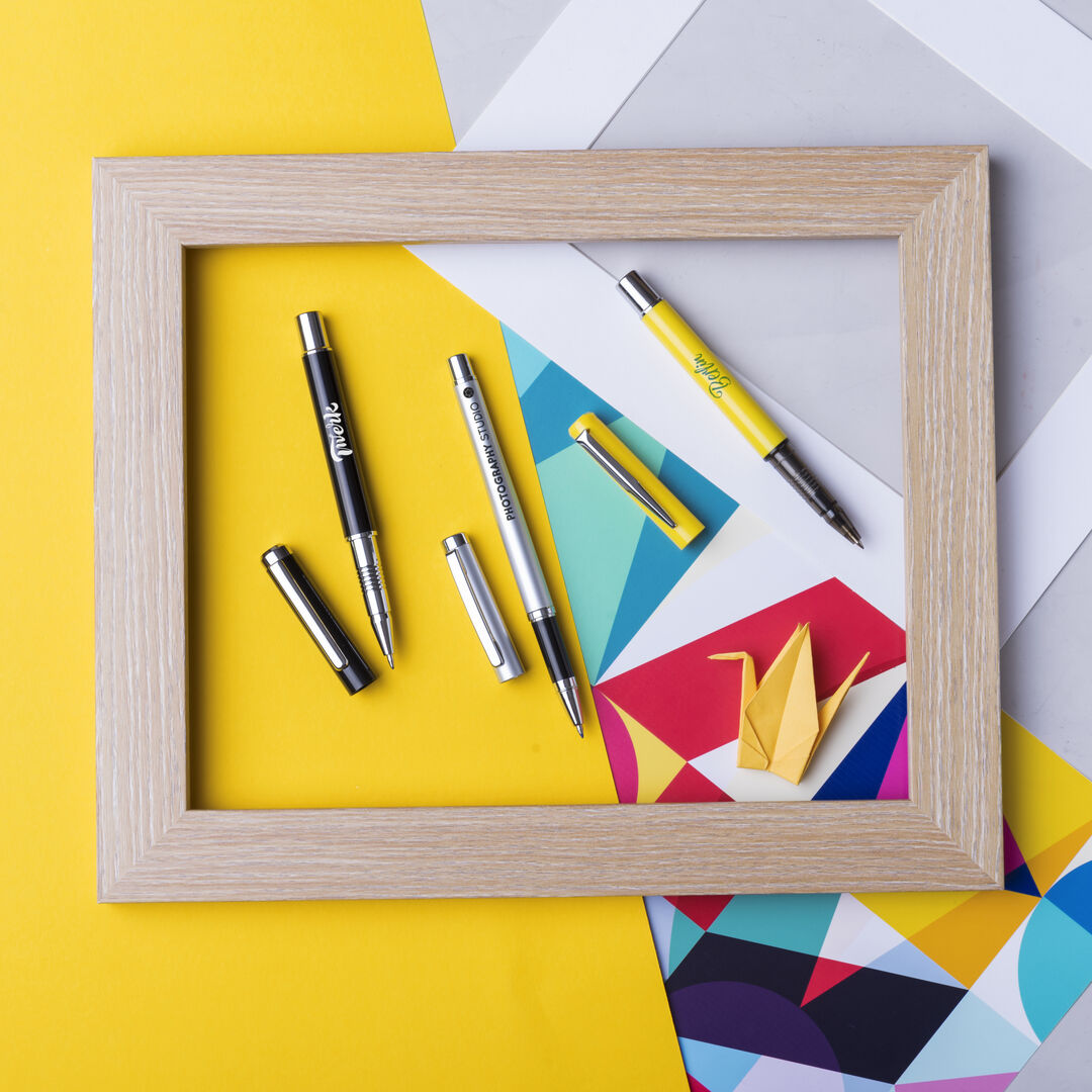 Penna roller con cappuccio dall'allegro design bicolore con corpo liscio rifinito in suggestivi colori cromatici e finiture in argento lucido.
