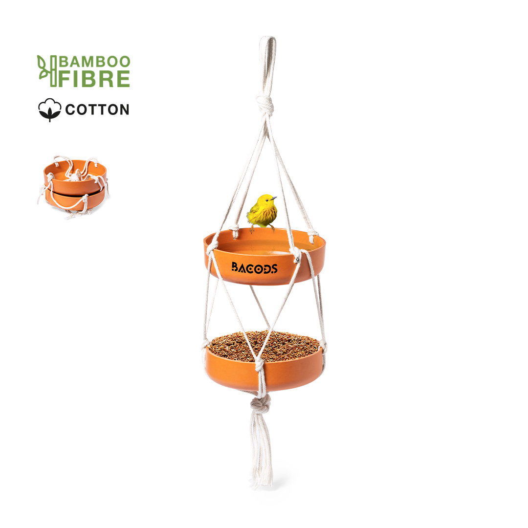 Con due contenitori in fibra di bambù (ciascuno di 15 x 4 cm) e una robusta corda di cotone naturale.